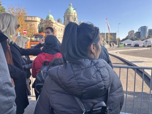 Pristalice Aleksandra Vučića hrle sa svih strana u Ćacilend. Zvaničan povod je doček Srba sa Kosova koji pešače do Novog Sada. Sa druge strane ograde smenjuju se građani koji pružaju podršku Dijani Hrki koja štrajkuje glađu, koji takođe stižu iz više gradova