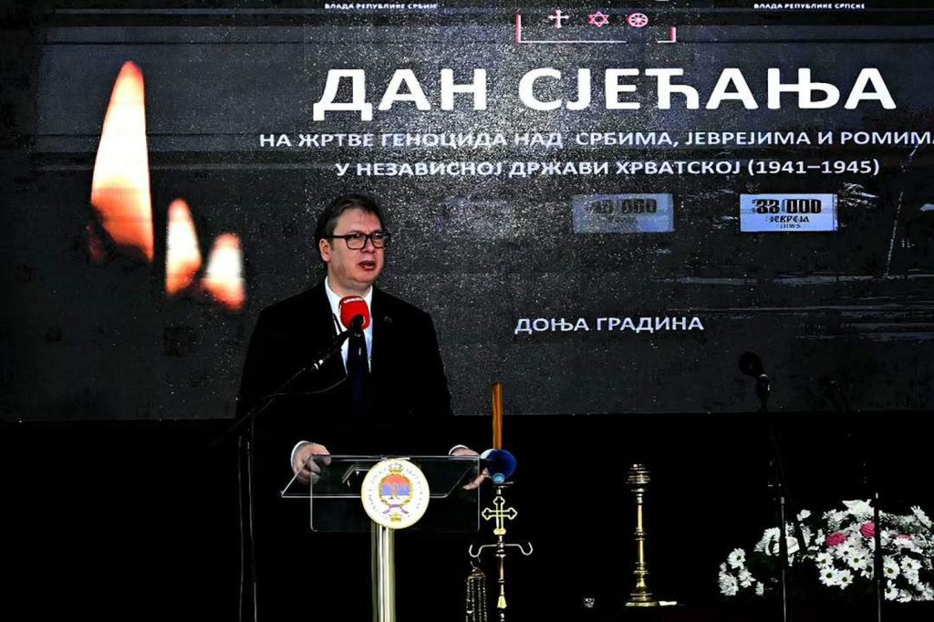 Predsednik Srbije Aleksandar Vučić i predsednik SNSD-a Milorad Dodik zajedno su u Donjoj Gradini obeležili „Dan sećanja na žrtve ustaškog zločina - genocida u koncentracionom logoru Jasenovac i njegovom najvećem stratištu Donjoj Gradini“. Šta je sve predsednik Srbije uspeo da izgovori