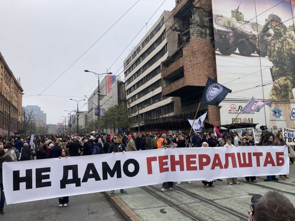 „Mi smo živi zid”: Protest studenata ispred GeneralštabaStudenti nekoliko beogradskih fakulteta i inicijativa Ansambl Generalštab okupili su se ispred zgrade Generalštaba, uz poruku da će „svojim telima braniti” ovaj simbol Beograda ako vlast ne odustane od planova za njegovo rušenje
