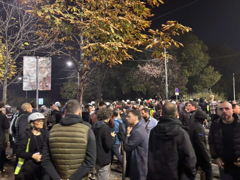 Dijana Hrka koja štrajkuje glađu ispred Skupštine je sklonjena zato što su bačene petarde. Stigla je i žandarmerija. Ćacilend je krcat, štiti ga policija