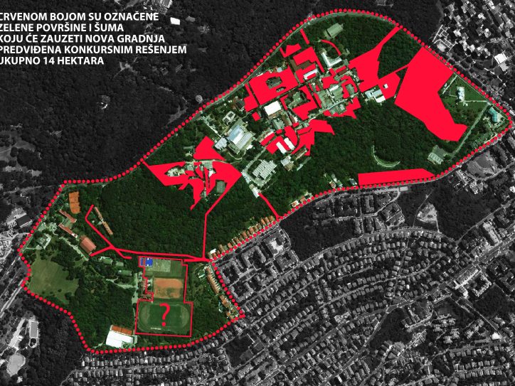 Površina zelenila i šume koja će biti zauzeta planiranom gradnjom na Košutnjaku iznosi minimalno 14 hektara. To dovodi u pitanje tvrdnju profesora Vladimira Lojanice da neće biti posečeno nijedno zdravo stablo