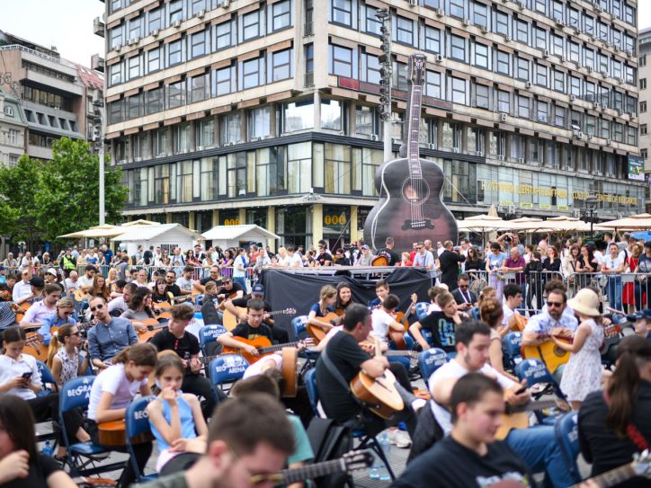 U Beogradu, danas je na Trgu Republike sviralo zajedno oko 1000 gitarista, i postiglo nacionalni rekord. Dejan Cukić, jedan od poznatih muzičara koji su im pomagali, kaže – bio je zaista lep osećaj