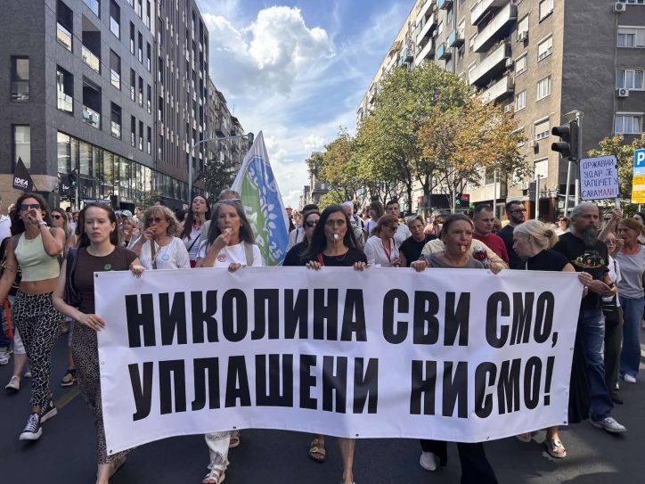 Na protestu „Sve smo mi Nikolina“ u znak podrške studenkinji Nikolini Sinđelić okupljeni su prošetali od Mostarske petlje, kraj zgrade JZO, sve do Vlade Srbije. Zgradu JZO obezbeđivale su isključivo policajke, a delovalo je da će najmlađa od njih u svakom trenutku zaplakati