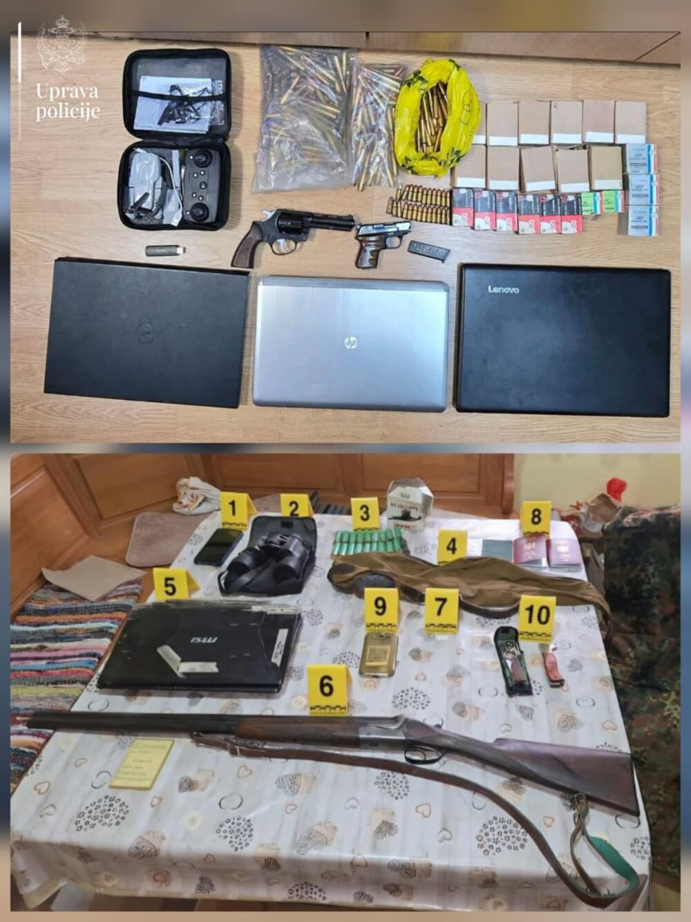 Operacija je izvedena na ukupno 13 lokacija u Danilovgradu, Nikšiću i Podgorici, gde su policijski timovi ulazili u stanove, pomoćne objekte i jednu advokatsku kancelariju. Pronađeno je 24 komada vatrenog oružja, više od hiljadu metaka različitih kalibara, više vrsta hladnog oružja, kao i vojne uniforme i obeležja proruskih formacija.