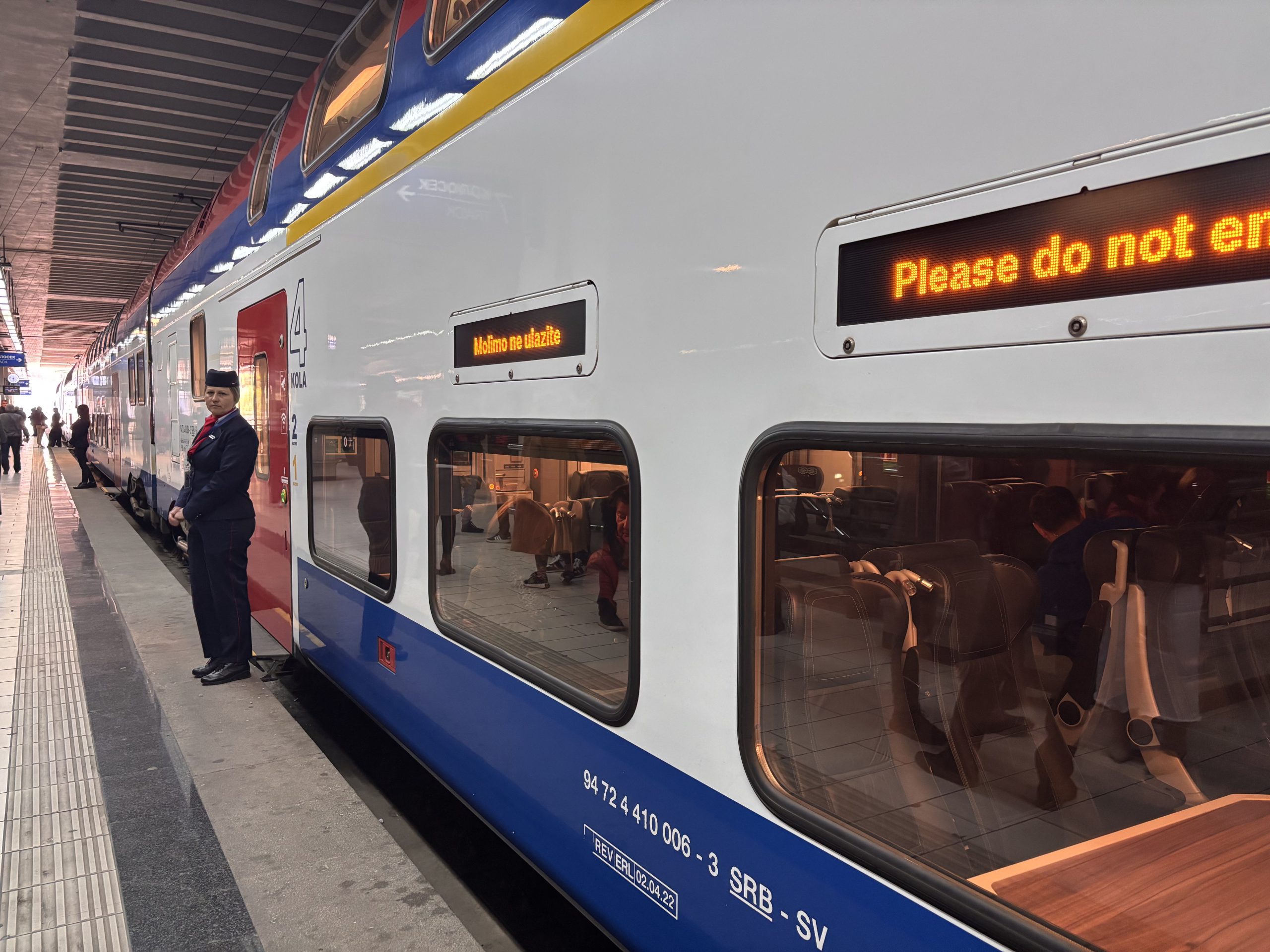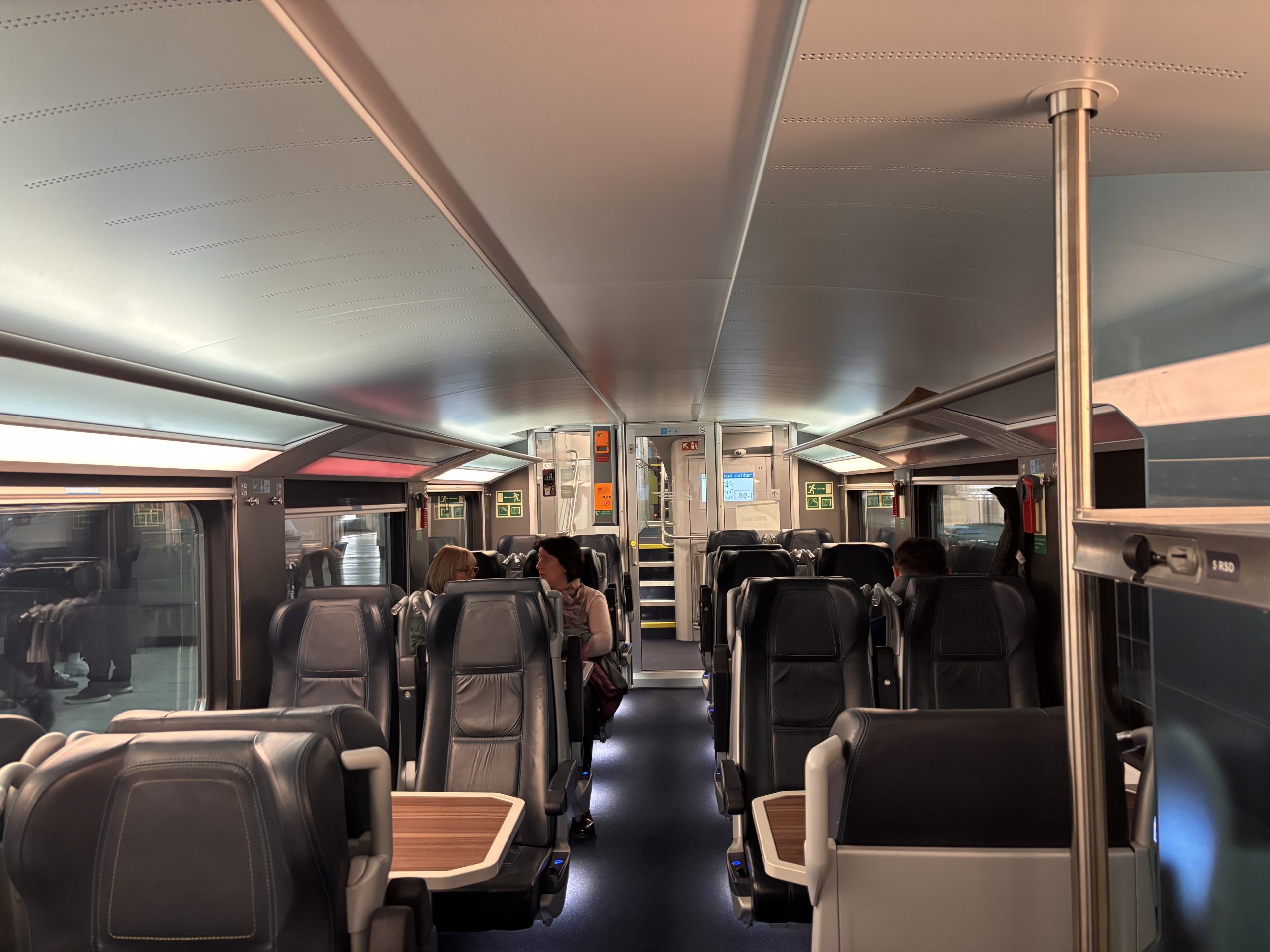 Voz ide brzo, za 29 minuta stigao je do Petrovaradina. Čist je, sedišta su udobna i ima interneta, ali automati za kafu između vagona ne rade, a mašine za prodaju vode i grickalica su prazne. Svega zato ima u baru.