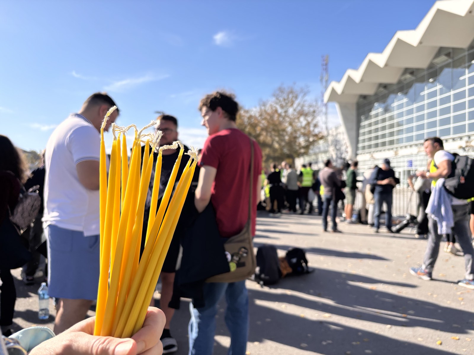 Ogroman broj ljudi stoji i čeka svoj red da odaju počast preminulima i priđu mestu gde su stradali građani 1. novembra prošle godine.