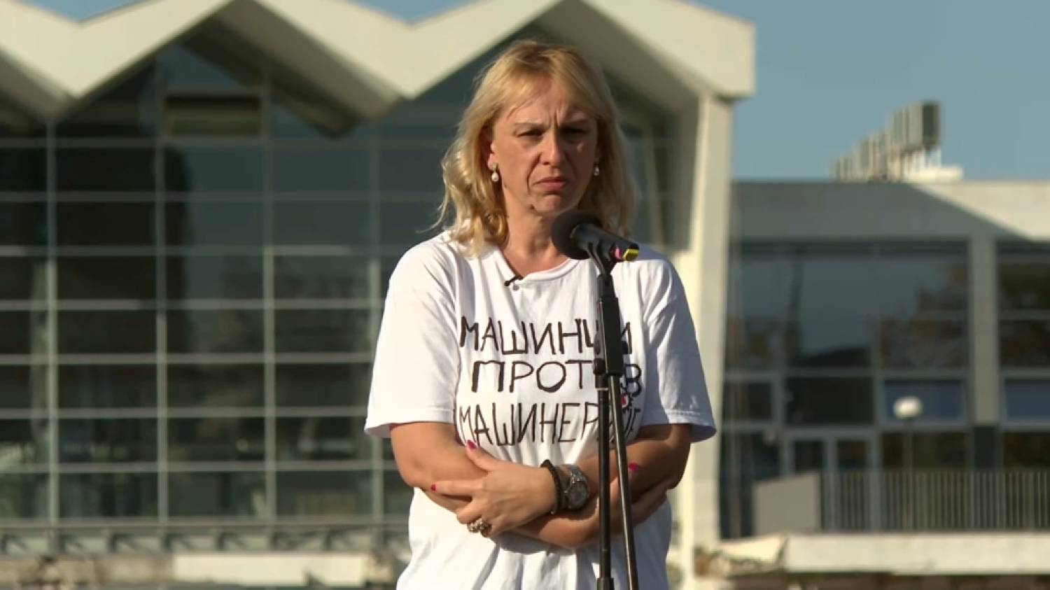 „Ja moram da znam ko je ubio moje dete, ko je ubio 16 ljudi“, rekla je Hrka na skupu u Novom Sadu, nedaleko od mesta pada nadstrešnice na Železničkoj stanici, od koje je pre godinu dana poginuo i njen sin.