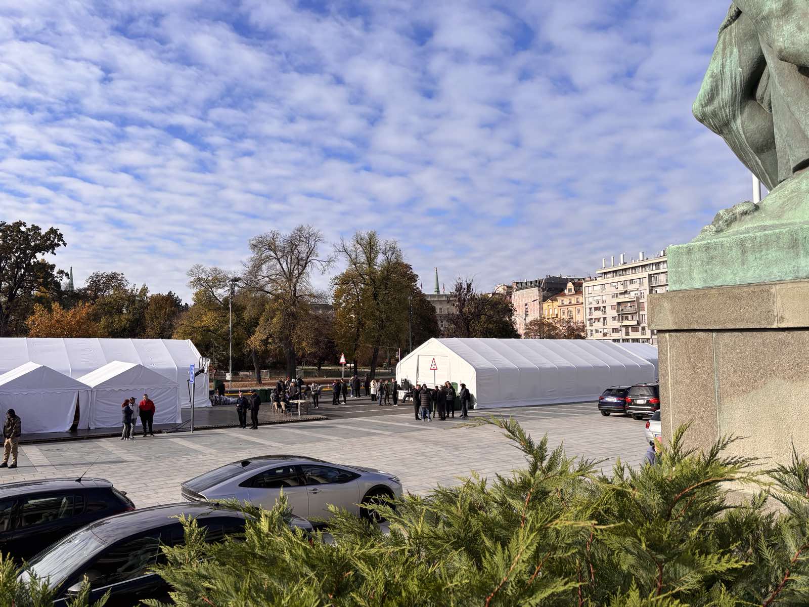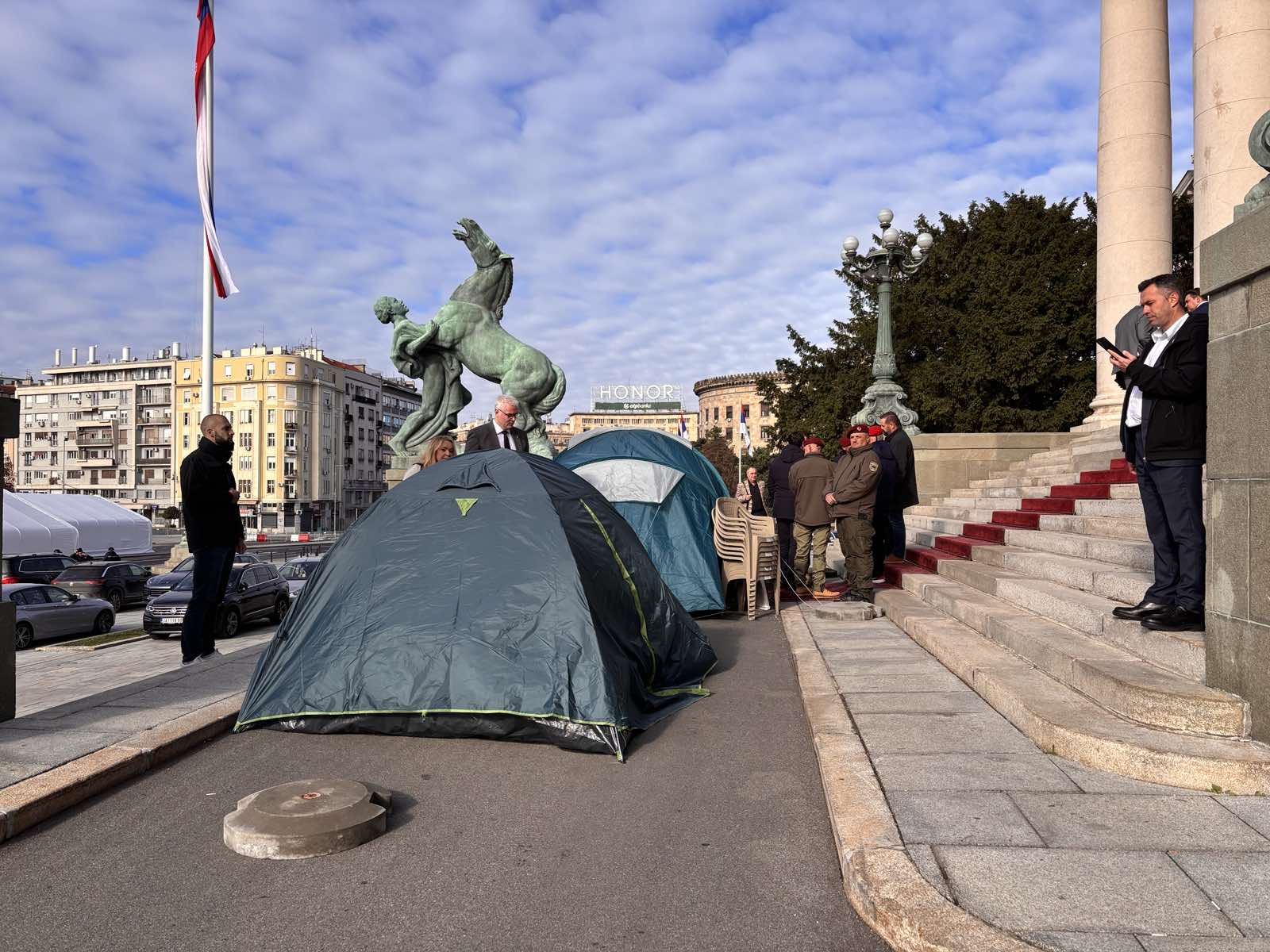 Desetak ljudi oko šatora pod kojim noć provodi Dijana Hrka, tri tende i nova koja niče. Postavlja je blokovski zbor. Tendu uz onu postavljenu pre tri dana pod kojom vreme provodi Dijana Hrka, postavio je zbor Rakovica.