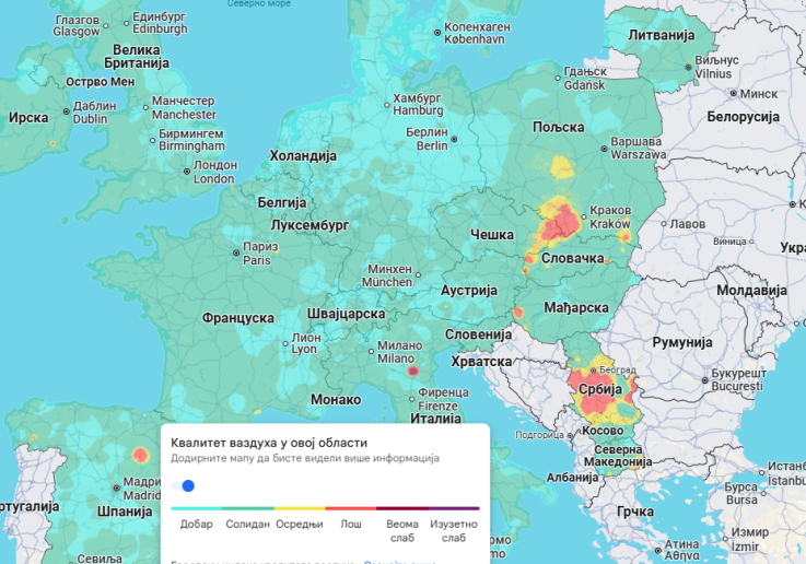 Srbija u crvenom: Kako da na Guglovoj mapi vidite kvalitet vazduha