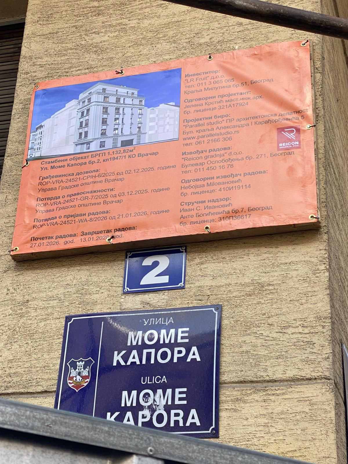 Prošle nedelje su oko kuće u Mome Kapora 2 na Vračaru postavljene građevinske skele i građevinska tabla, znak da će uskoro biti srušena.