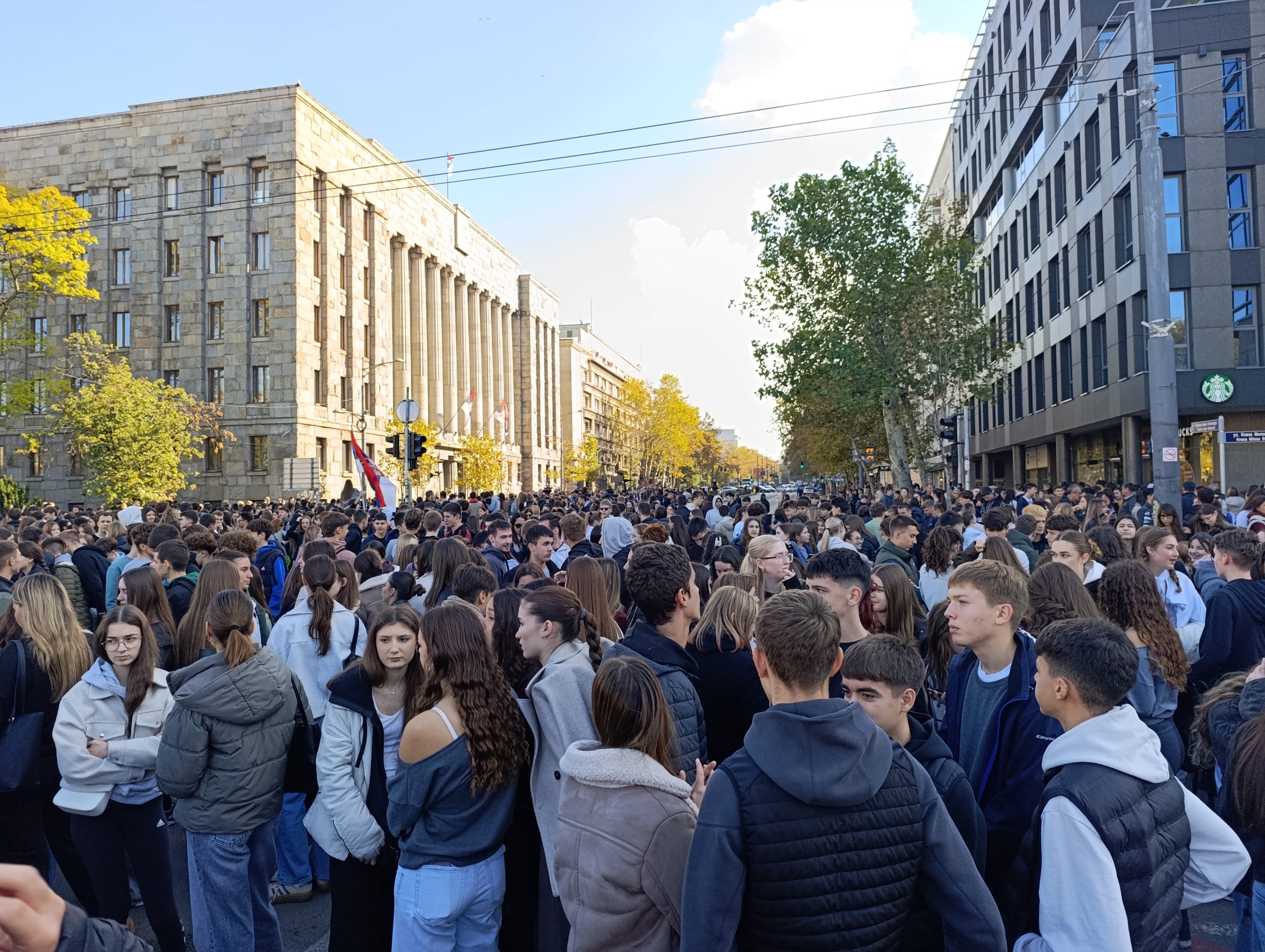Kolone učenika iz svih pravaca i dalje pristižu ka Skupštini. Kako navode mediji, prisutni su đaci Dvanaeste i Četvrte gimnazije, Matematičke, Elektrotehničke, Srednje dizajnerske škole i Ekonomske.