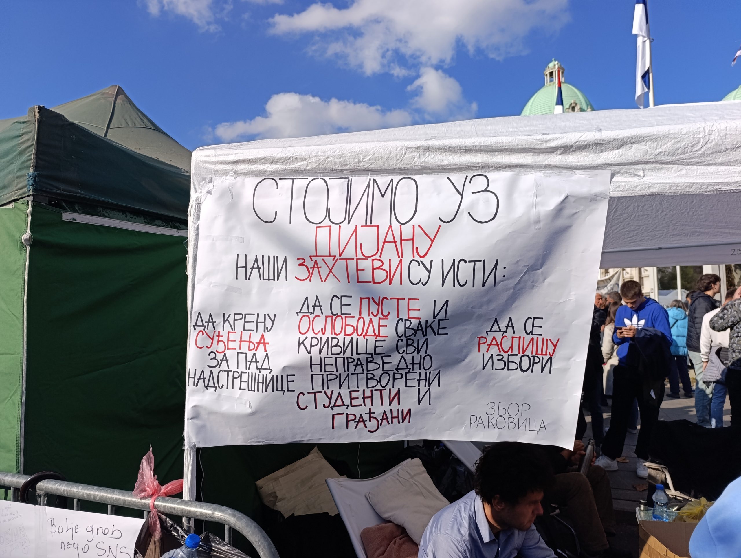 Oko Doma Narodne skupštine i u šatorskom naselju raspoređeni su policajci.