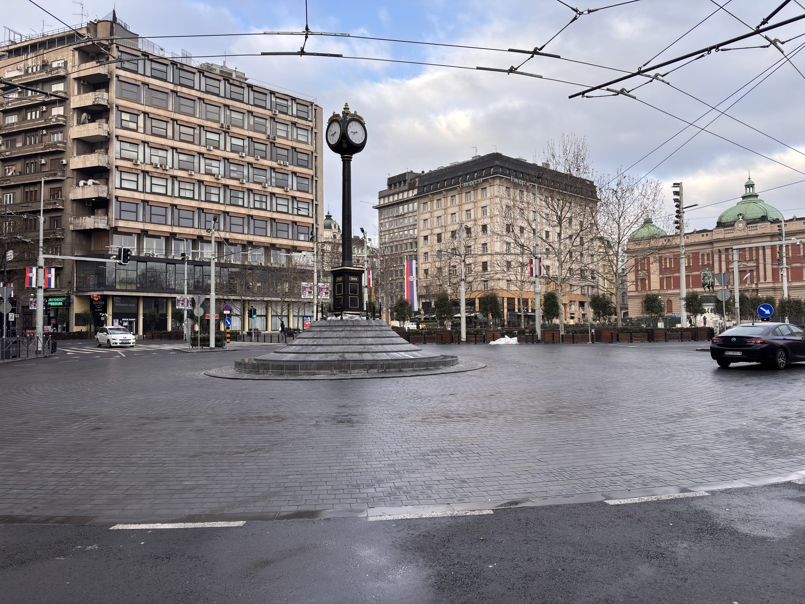 U noći između subote i nedelje, beogradski Trg republike dobio je novi simbol - sat usred kružnog toka