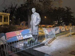 Spomenik Ivi Andriću se trenutno nalazi u Ćacilendu, i izgleda kao da je zarobljen. Istovremeno, ljudi sa beogradske strane ograde, obeležavaju 50 godina njegove smrti promocijama knjiga, izložbama...