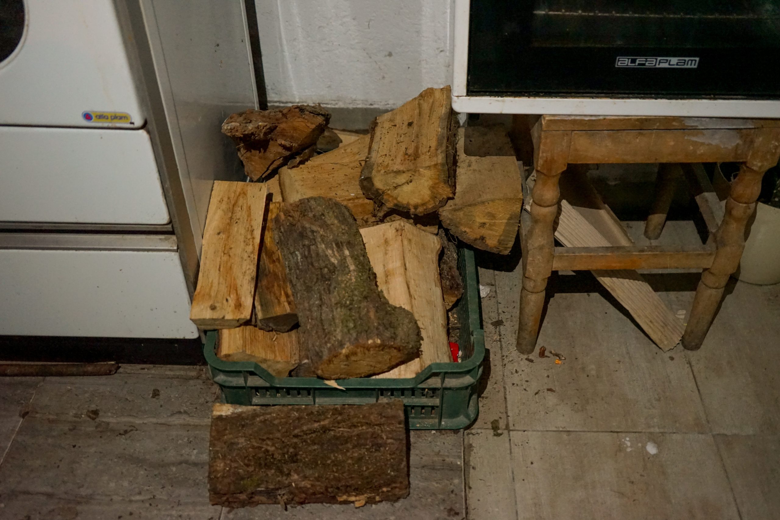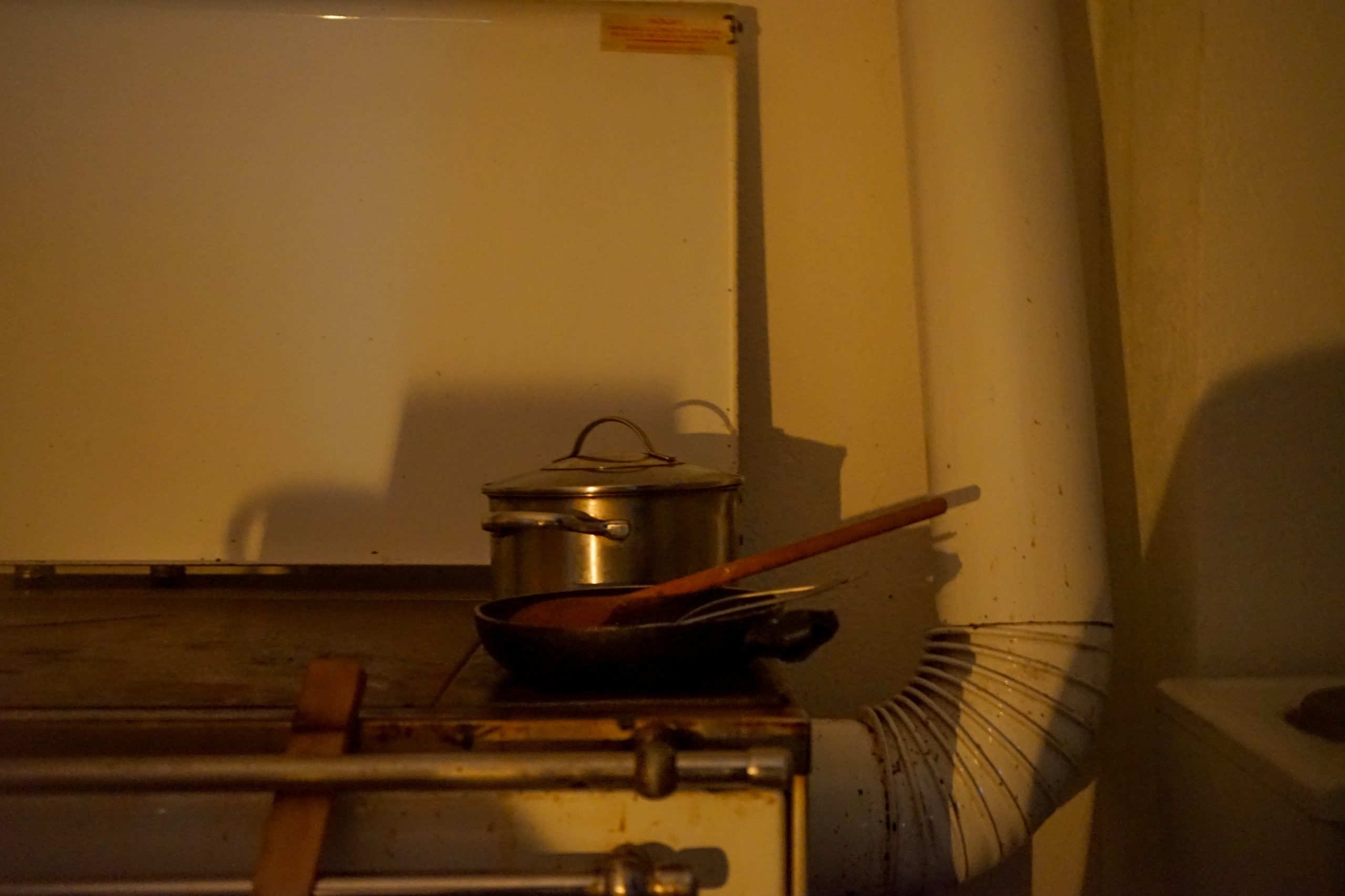 Jedina svetlost u prostoriji u domu dvoje penzionera dolazi od sveće na stolu zabodene u zrna kukuruza. Plamen tiho treperi i baca senke po zidovima koje jedva zagreva kotao na drva. Pored kotla, nekoliko cepanica.