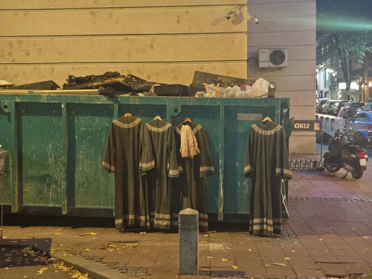 Pozorišnim kostima nije mesto na kontejneru. Fotografija koju objavljujemo snimljena je ispred zgrade Narodnog pozorišta