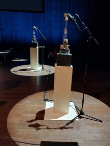 Čuli su se folklorno ojkanje, blejanje ovaca, monaško pojanje, religijske inkantacije, unisono četvoroglasje. Mašine kao da su oživele i počele da plešu. Efekat je bio neobičan jer se na sceni ništa živo ne pomera, a u zvuku se mehanički razvijaju različite strukture