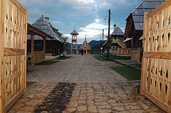 Mesto izgleda kao verna rekonstrukcija naselja kakvo nikad nije postojalo. Još se dovršava i miriše na strugotinu i kolomast, vidi se da je nastalo odjednom, iz glave jednog čoveka, a od vas se očekuje da zamislite vekove i generacije žitelja. Tu je crkva sa zvonikom, ali za groblje je rano. Mali trg, ulica s kućama s obe strane, ograde, tremovi, sve drveno; prodavnica, poslastičarnica, biblioteka, bioskop… Da, kuće liče na srpske planinske, ali raspored je pre kao iz gradića koji ste videli u nekom starom vesternu, pomalo kao kulise.