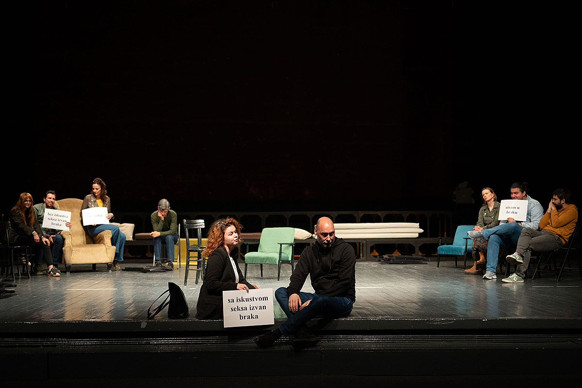U želji da kod nas provociraju slobodu, rediteljke Anđelka Nikolić i Bojana Lazić opredelile su se za vrstu teatra koju bismo mogli da nazovemo interaktivnim ili imerzivnim pozorištem. Suština ove vrste pozorišta jeste da se publika uključi u proces igranja predstave i da može da utiče na tok predstave (u okviru zadatog scenarija). Da bi to postigli, glumci i glumice su se pomešali sa publikom, u nadi da ćemo poverovati kako su reči koje izgovaraju zaista njihove. Cilj je bio da se izazove iskreni odgovor publike. Problem je bio u tome što nisu svi glumci bili podjednako ubedljivi – kod nekih se bukvalno čulo da govore tuđ tekst. Takođe, dramaturg Kokanov nije uspeo da od izjava sastavi likove, te je izgledalo kao da akteri predstave protivreče sami sebi. Publika koja je verzirana u ovoj vrsti teatra, kao i u pozorišnim radionicama i raznim vrstama grupne psihoterapije, mogla je lako da prepozna jezik predstave i da se uključi. Međutim, neki su postavili razložno pitanje: ako vi “glumite” likove, zašto nas provocirate da vam govorimo svoje istinite životne priče? Reditelji i glumci su na to odgovorili da niko nije u obavezi da otkriva svoju intimu ako to ne želi. No onda se postavlja pitanje: a čemu sve ovo ako ni publika ni glumci ne govore istinu? Očigledno, ovaj deo publike je rediteljski postupak doživeo kao manipulaciju. Problem je delimično do rediteljskog postupka, ali dobrim delom “krivica” je do osećanja opšteg društvenog stanja i nepoverenja koje je u direktnoj vezi sa onim o čemu smo pisali u prvom pasusu. Šteta je što autori predstave i glumci nisu pronašli rešenje za ovaj problem. Veliki deo publike je ostao u gledalištu i njima je predstava bila odbojna. Interaktivno, imerzivno pozorište gubi smisao kada se samo gleda, a da bi se učestvovalo, potrebno je kako-tako, koliko-toliko pokazati put “publici” kako da svoje privatno stavi na bezbednu distancu, a da lično bude uključeno.