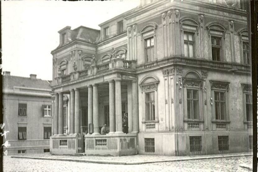 „Zgrada je bila bogato dekorisana fasadnom plastikom sa klasičnim motivima. U prizemlju, prozori su bili ukrašeni balustradama, konzolicama i reljefnim poljima u natprozorniku“. Dalje kaže da su „uglove fasade u prizemlju i na spratu ukrašavale su udvojene lizene, ukrasne imitacije stubova u plitkom reljefu, koje su se u prizemlju završavale korintskim kapitelima, a na spratu elementima keramoplastike upečatljivih zoomorfnih motiva i ženskih neoklasicističkih lica koja su se ponavljala duž cele fasade.“