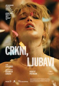 Crkni, ljubavi je najnoviji filmi škotske sineastkinje Lin Remzi, kod nas cenjene i u dovoljnoj meri prepoznatljive autorke filmova Movern Kolar, Zamka za pacove, Moramo da razgovaramo o Kevinu, Ti nikada zaista nisi bio ovde. Ova faktografska crtica pruža precizne reference o stilu, izrazu i tematsko-motivskoj arhitektonici novog ostvarenja ove autorke. Krenulo se od istoimenog (i kod nas prevedenog) romana Arijane Harviks, a čini se da je film uspeo da segne i par koraka dalje: centralni motiv romana je postporođajna depresija (i sa njom uvezana propast braka i društvenog života onih koje takva muka zadesi), a ova ekranizacija u jednakoj meri naglašava još dve tematske ravni: metatekstualnu dimenziju, odnosno blokadu koja pokosi one koji osećaju čak i dubok poriv da pišu, te krhkost bračnog konstrukta u vreme određeno narcisizmom. Utoliko se može reći da je ovaj film nadogradnja nedvosmisleno uspešnog romana, koja tvori gotovo organsku vezu između ova dva narativna medija.
