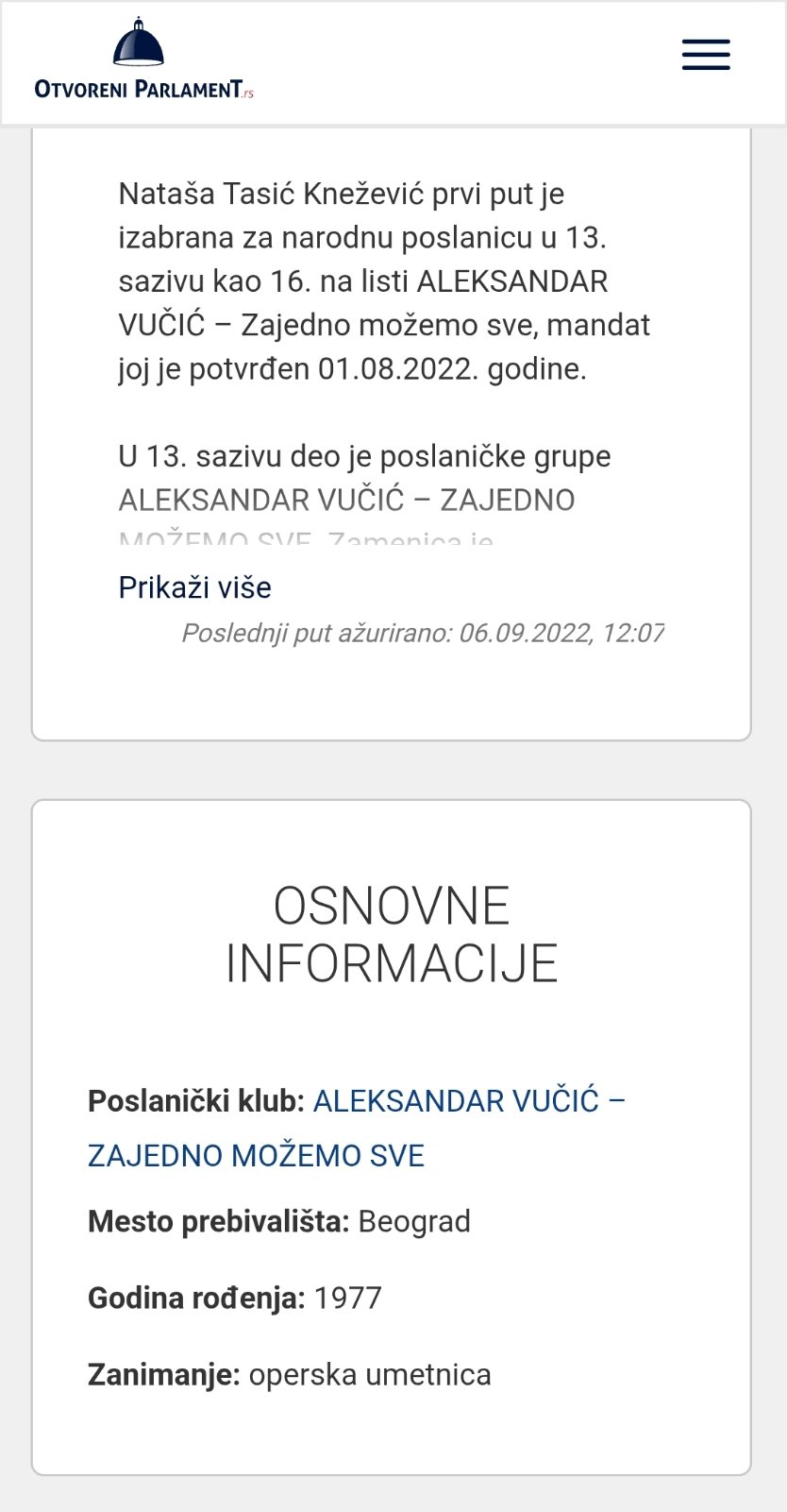 Kao dokaz opravdanosti pomenutih priča navodi „njeno nedavno izvođenje himne u Novom Sadu na skupu pristalica SNS protiv studentskih i građanskih protesta.“