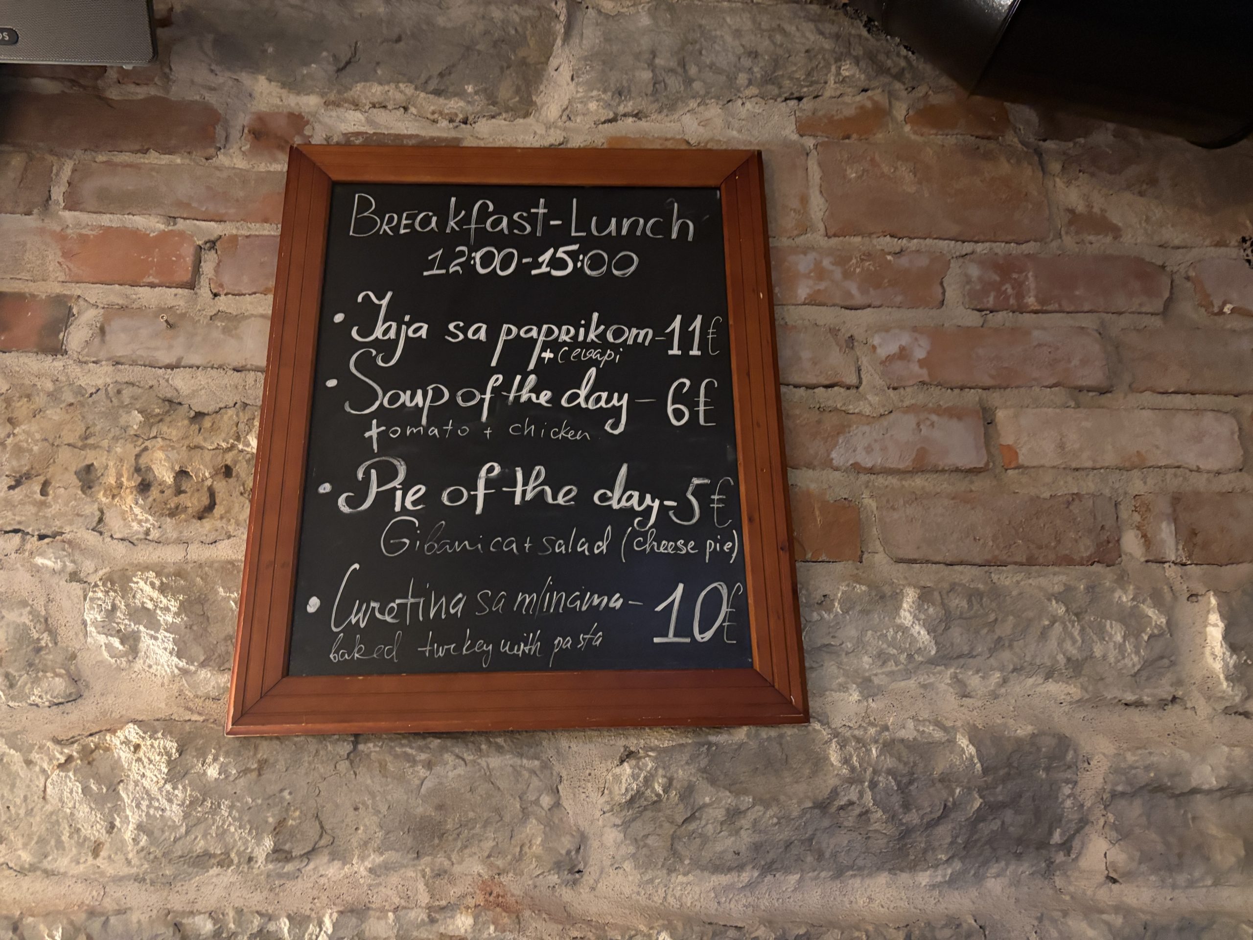 Na meniju ajvar, sarma, gibanica, pite, pohovana paprika sa sirom, uštipci, ćevapi i druge srpske đakonije, ali nijedan sastojak nije stigao direktno iz Srbije. Plan vlasnika je da se ubuduće to promeni.