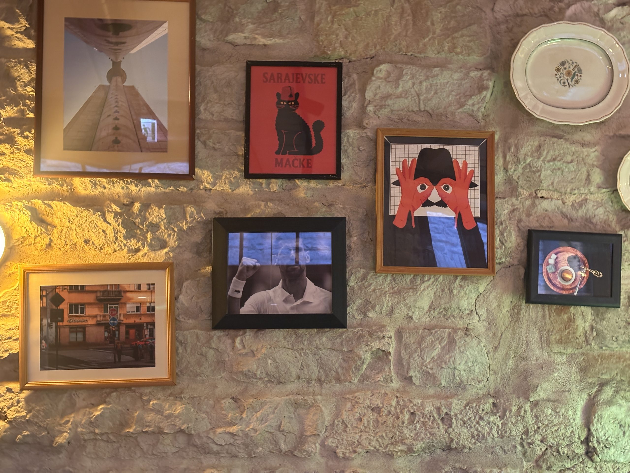 Enterijer lokala prati ideju sa kojom je otvoren: na zidovima su fotografije Novaka Đokovića, „Juga“, te ilustracije iz „Balkanskog špijuna“. Na šanku šljivovica, viljamovka i druga žestoka pića. Doduše, ne iz Srbije.