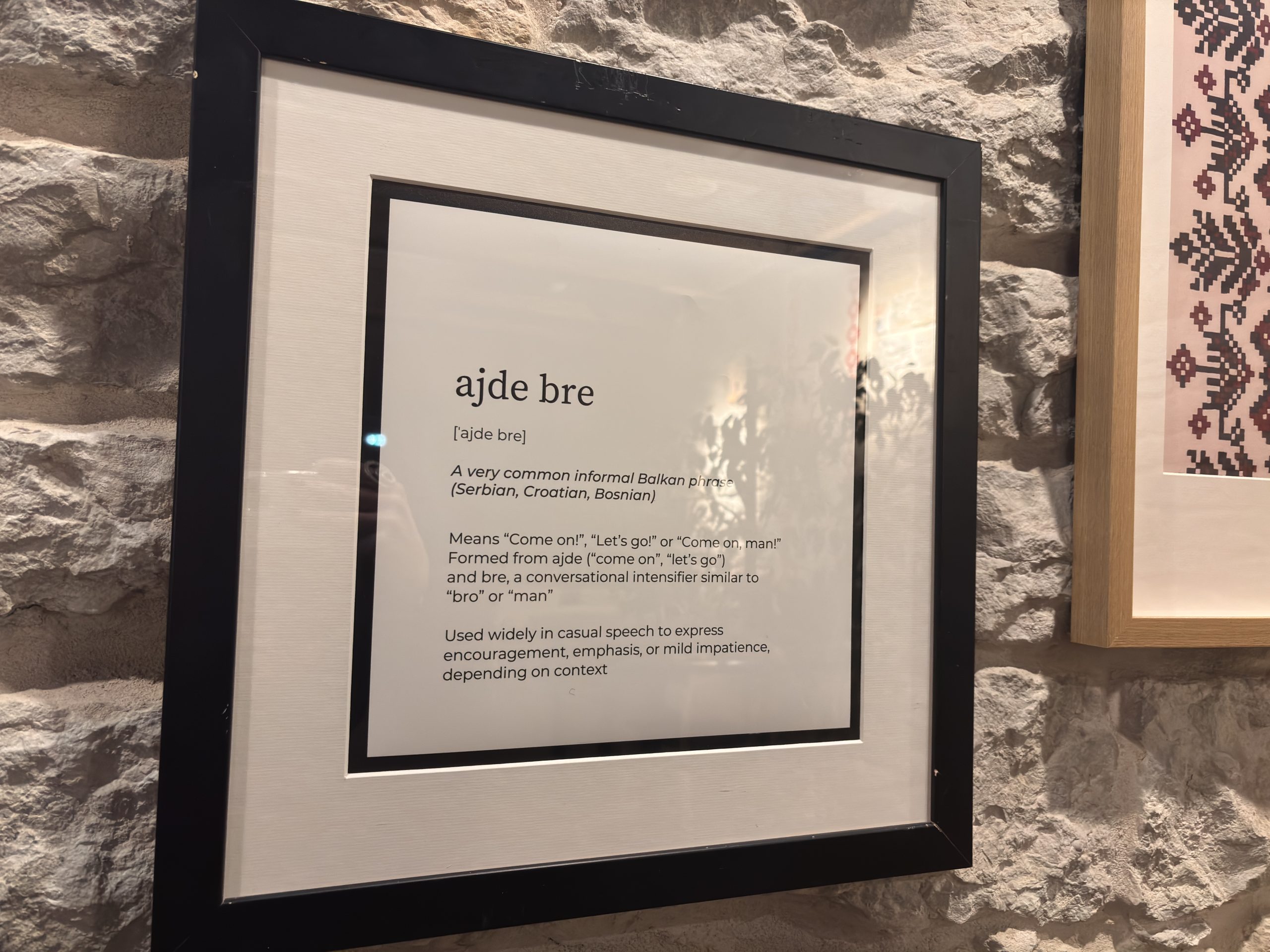 Kada je birao ime, dvoumio se da li restoran da nazove „Jugoton“, po fabrici gramofonskih ploča ili „Ajde bre“. Druga ideja je pobedila.