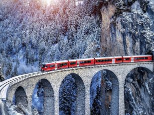 Između Tirana i Sent Morica “Bernina Express” prolazi kroz 55 tunela i preko 196 mostova i vijadukta, a ako putujete po sunčanom zimskom danu, videćete neke od najspektakularnijih prizora na Alpama