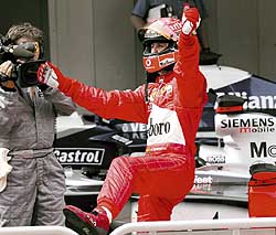 Mihael Šumaher je opet pobedio. To prestaje da bude vest. Em bolid radi kao sat, em čovek zna da ga vozi. Medjutim, u Ferariju su se pribojavali da stvari neće ići baš tako glatko jer se Šumaheru na poslednjem treningu pred trku nasred staze iz čista mira ugasio motor! Probleme na trci ipak nije imao on, već drugi vozač tima. Na veb sajtu F1-live osam minuta pre starta pisalo je da je „Baričelo prezauzet davanjem intervjua i ćaskanjem s visokim gostima (VIP, uključiv i kralja Huana Karlosa) kojima je dozvoljeno da budu na samoj stazi do starta trke“. Možda mu se baš zbog toga ugasio motor pre „paradnog kruga“, posle čega nije uopšte ni startovao.