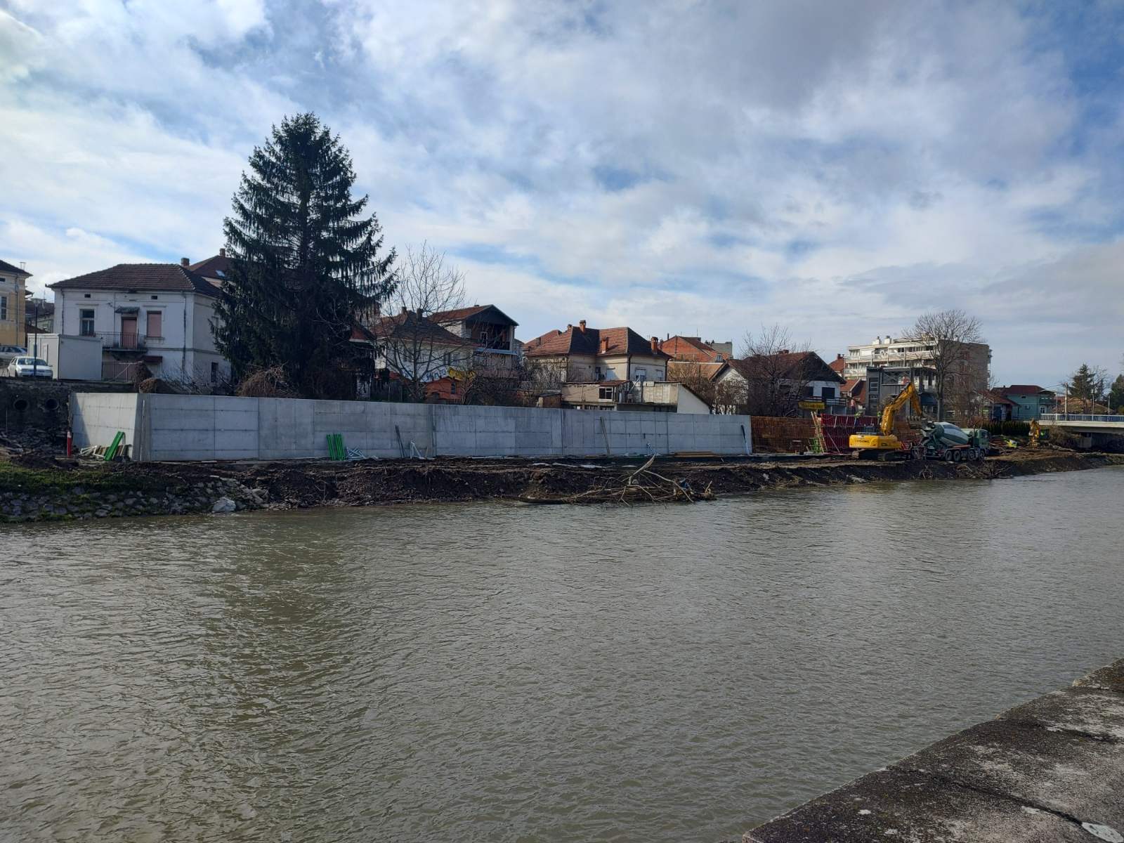 Studenti su pokušali da u ponedeljak, 16. marta, blokiraju gradilište, ali ih je policija udaljila. Prethodno su policajci pretresli okupljene studente koji su pokušali da spreče radove jer smatraju da se izgradnjom zida krši Zakon o planiranju i izgradnji, kao i Plan generalne regulacije koji za to područje predviđa isključivo prirodnu regulaciju rečnog korita.