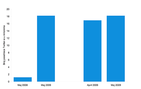 Ljudi nastavljaju da provode sve više vremena na socijalnim mrežama, a prema podacima agencije Nielsen posetioci socijalnih mreža su u maju 2009. provodili na ovim sajtovima čak 82 odsto više vremena nego u istom periodu prethodne godine. Broj korisnika Twitter socijalne mreže u 2009. porastao je čak 15 puta u odnosu na 2008, čime je Tviter (Twitter) postao sajt sa najvećim porastom u broju korisnika u 2009. Iako je stopa rasta na godišnjem nivou značajna, čini se da se razvoj Tvitera usporava, pa je tako u maju 2009. zabeležen porast od svega sedam odsto u odnosu na april 2009. Fejsbuk se, sa svojih preko 140 miliona redovnih posetilaca, već sedam meseci nalazi na prvom mestu Nielsenovovog pregleda posećenosti socijalnih mreža, a broj njegovih korisnika i dalje značajno raste.