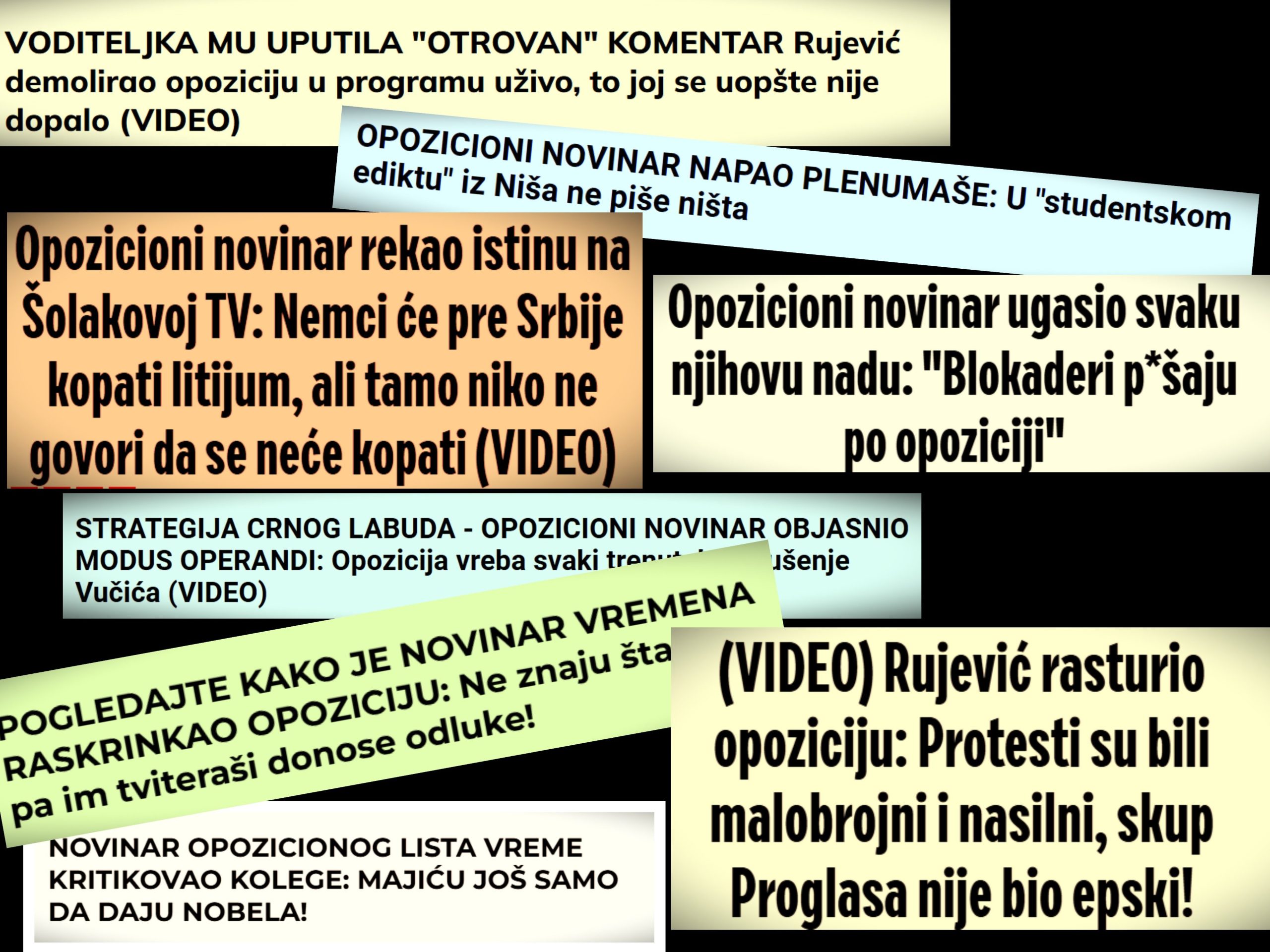 Čovek ode da smatra nešto na televiziji ili kakvom Jutjub kanalu, tamo gde uopšte hoće da ga zovu. Pregaoci režima to prate, traže isečke u kojima se makar malo i ovlašno kritikuje opozicija (ili sada studentski pokret), ignorišu ostalih pola sata u kojima se kritikuje vlast i montiraju video.