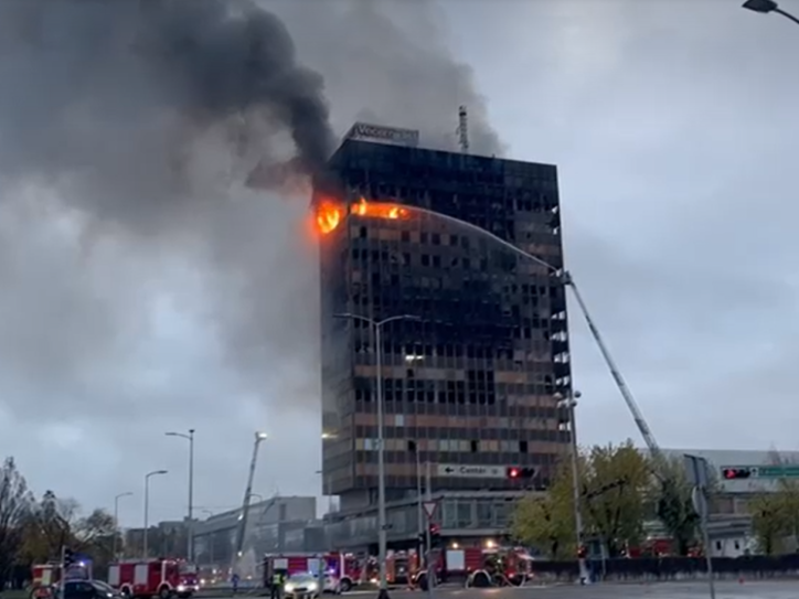 U ponedeljak, 17. novembra kasno uveče izbio je požar u Vjesnikovom neboderu u Zagrebu, prenosi Index.hr. Uzrok požara nije poznat