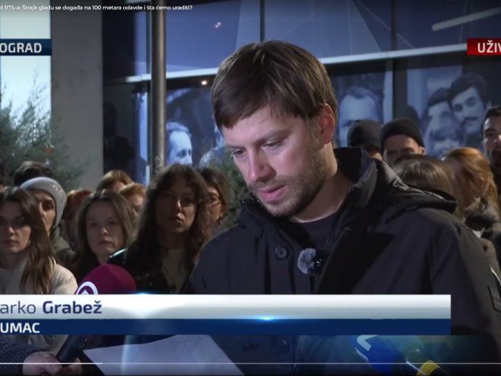 U nedelju u vreme Dnevnika, ispred zgrade RTS-a zato što ih nisu pustili pred kamere, glumci su poslali poruku Dijani Hrki. Pre toga pozdravljali su je sa pozorišnih scena u Ateljeu 212, Leskovcu...