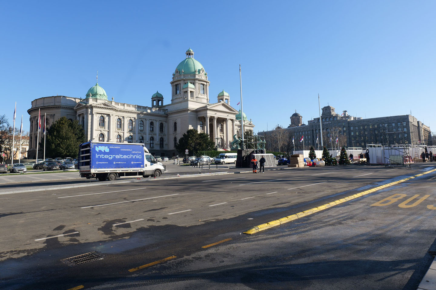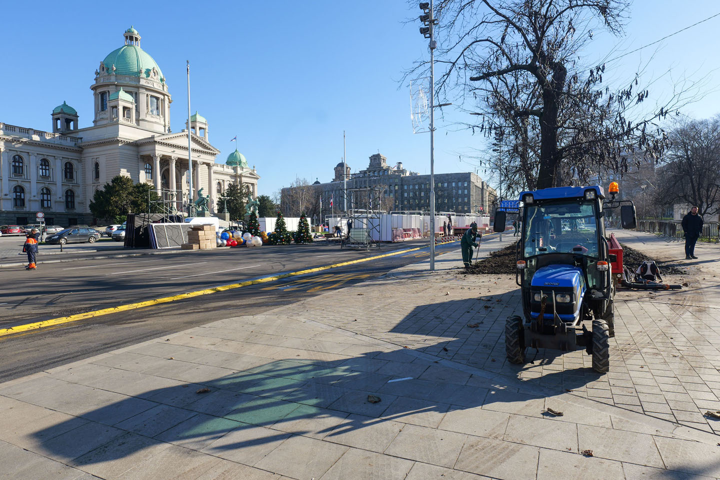 Strpljenje se isplatilo. Ćaciclend je konačno kapitulirao. Dok radnici demontiraju šatore, prolaz platoom ispred Narodne Skupštine je ponovo slobodan za pešake