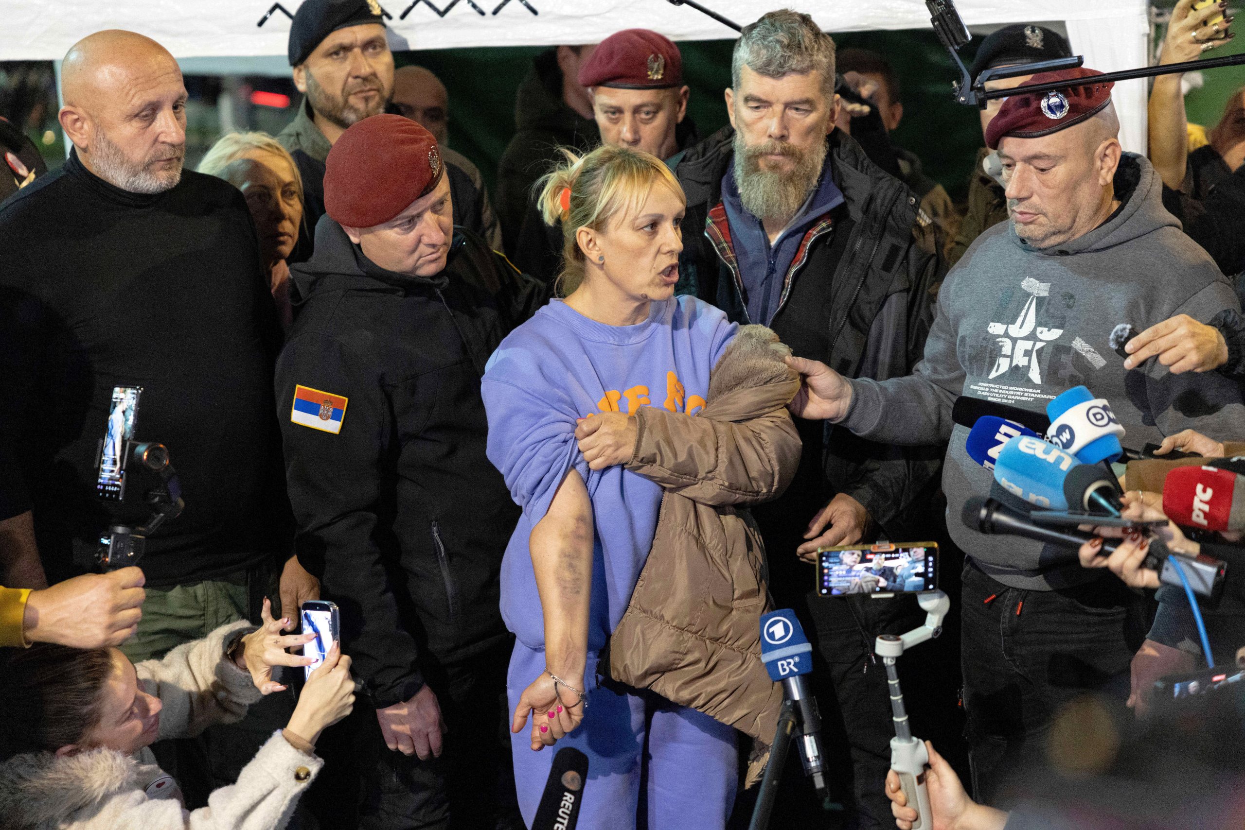 Kako je rekla da zasad nema zdravstvenih poteškoća zbog toga što je štrajkovala glađu, malaksala je, ne može dugo da stoji. Prethodno je pokazala modru ruku.