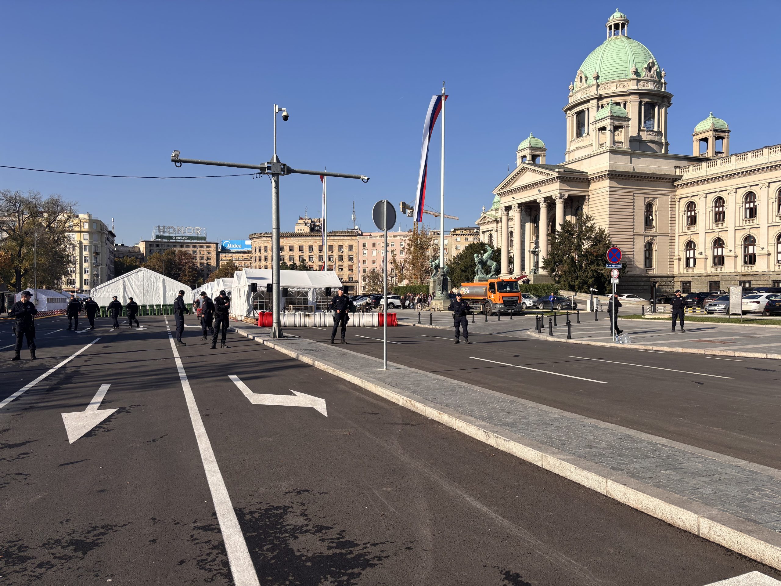 „Policijska uprava za grad Beograd ističe da su neistiniti navodi koji su se pojavili u pojedinim medijima i na društvenim mrežama, a u kojima se tvrdi da su policijski službenici Policijske stanice Palilula, Policijske uprave za grad Beograd, odbili da obezbeđuju prostor Pionirskog parka, gde se održava prijavljeno javno okupljanje”, navodi se u saopštenju MUP-a.
