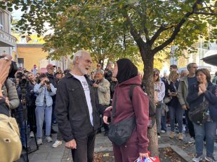 Učenici Pete gimnazije i građani Beograda dočekali su studente koji danima pešače iz Novog Pazara. „Ovo što rade Novopazarci ne može se opisati rečima — hrabrost, integritet, ljubav“, kaže Nikolina Žikić, jedna od okupljenih ispred škole