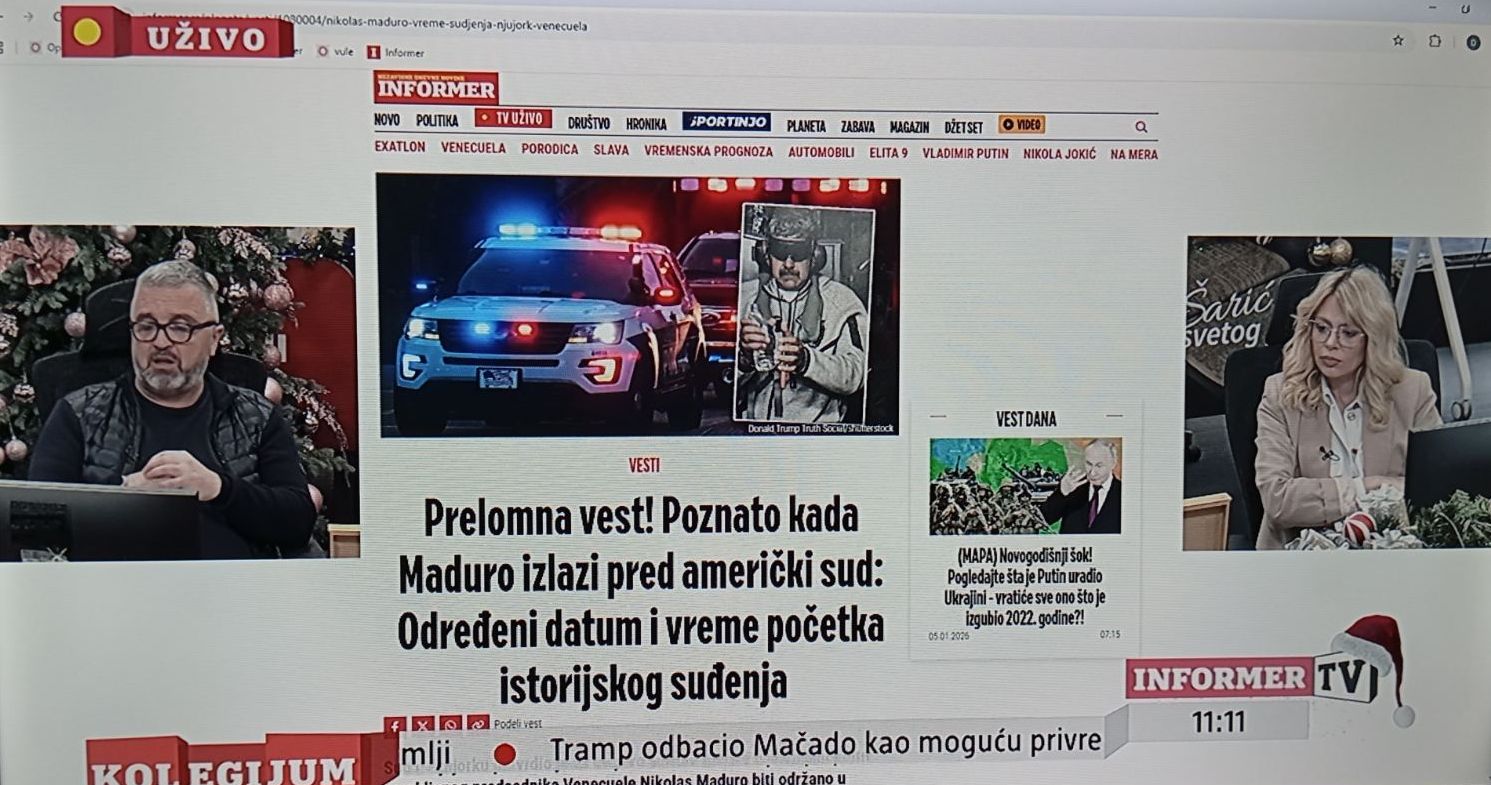 Komentarišući najavljen početak suđenja Maduru, novinarka Informera Andrea Veskov usmerila je svoju srdžbu ka američkom pravosuđu ukazujući na to da se govori da će predsednik Venecuele biti izveden „pred lice pravde“.