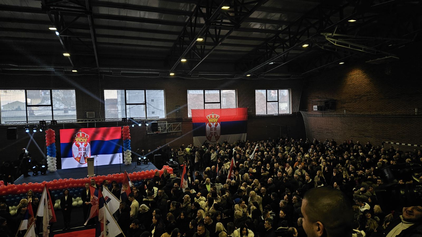 Srpska lista održala je predizborni skup u Sportskoj hali u Severnoj Mitrovici, a u medijima na albanskom jeziku u utorak uveče su se pojavili navodi da je Kosovska policija, navodno, sprečila pokušaj da se sedišta prefarbaju u boje srpske trobojke.