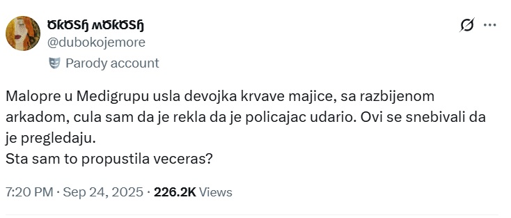 tvit medigrupSvedočanstvo da MUP ne govori istinu / “Izvor: X/dubokojemore”