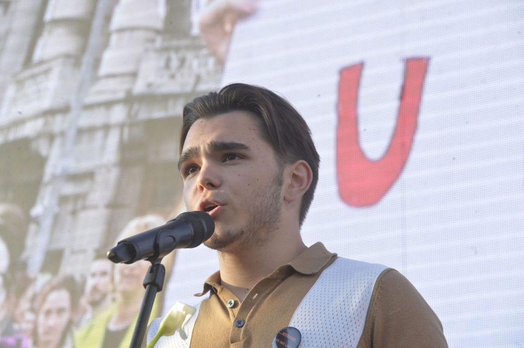 Maturant Prve beogradske gimnazije Nikola Milanović pročitao je svoju pesmu „Ko smo mi“.