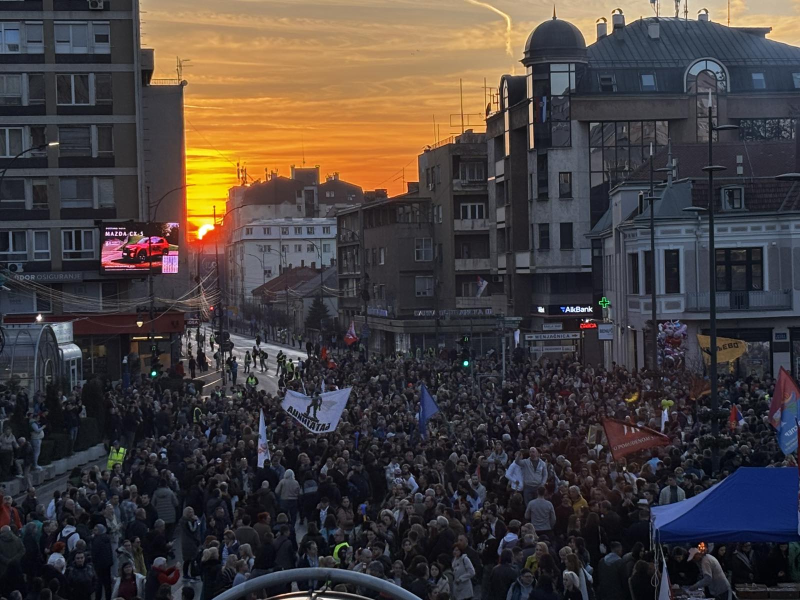 Protest je počeo okupljanjem kod Apelacionog suda i na kružnom toku kod tržnog centra „Delta planet“ odakle se u 16.30 krenulo na Trgu kralja Milana, gde je prema planu glavna tačka današnjeg skupa.