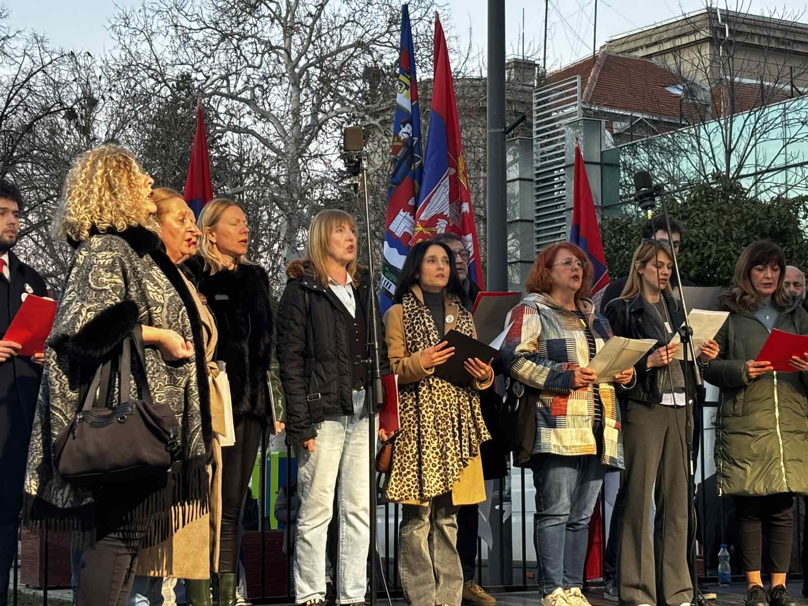 Održano je 16 minuta tišine za poginule ispod pada nadstrešnice, tokom čega su studenti puštali bele balone u nebo. Nakon odavanje počasti, pesma “Što te nema” bila je uvertira u obraćanje ratnog veterana Slavoljuba Radulovića, koji je poručio da “imamo samo jednu otadžbinu koja treba da pripada svim ljudima, umesto samo režimu”.