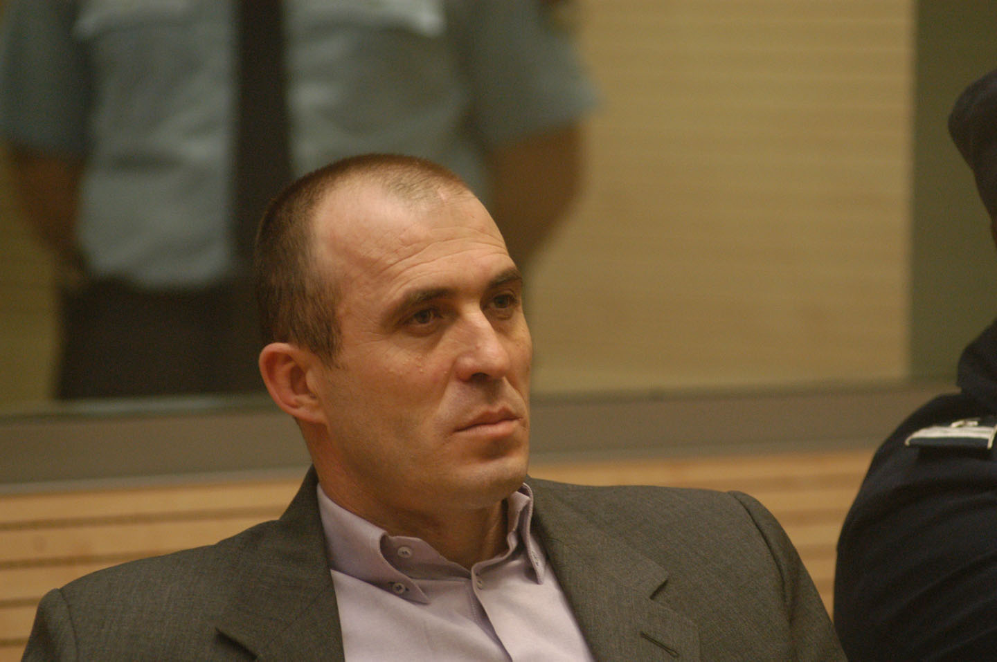 Foto: Vesna AnđićPrvooptuženi za ubistvo Đinđića Milorad Ulemek Legija u Specijalnom sudu za organizovani kriminal. Beograd 10. maj 2004.