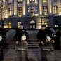 Predsednik Srbije Aleksandar Vučić gleda u visinu ispred Narodne Skupštine