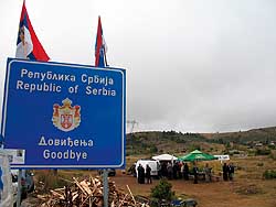 Dakle, posle Prijepolja, gore i visoko, Jabuka, gdeno valio Boško Buha, posle srpske rampe, međuprostor, velika tabla Republika Srbija, „Doviđenja“, iza table i desno lice mesta sa Filaretom, iza srpske „doviđenja table“ tabla opštine Pljevlja, tu nekoliko „puhova“ crnogorske policije, tamo dalje crnogorska rampa. Na licu mesta mali šator, pored njega mali beli kombi oblepljen ‘artijom i bijelim platnom, desno veliki šator, iza malog šatora transparent „Štrajk glađu“. Priđemo, sveštenik sa Nikolson crnom kapom nam dade ikonicu Belog anđela, kaže, loše vladika, u kombiju, ne izlazi. Pod šatorom malim nazovemo Boga, odzdraviše, nekoliko ljudi, sveštenika, ti’ novinara.