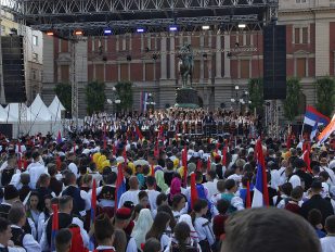 Krenu taj program, biće folklor, reporter bi slobodan pita gospodina Vitu, koji im’o brkove šešir i naočare za sunce, kao najviši i prisutni SNS čin, zašto gospodin Vita nije otvorio manifestaciju. Gospodin Vita samo manu rukom, k’o da reče, Sve se vidi, gospodin Rajko, koji tkđ imaše naočare za sunce, uze dopuni, Sve se vidi ko dan! Reporter bi slobodan pita najviši prisutni SNS čin, moreli ga slika, gospodin Vita samo manu rukom i još okrete glavu. Šta će, kud će, reporter bi slobodan uslika gospodina Vitu i gospodina Rajka s leđa, kako tako sede i gledaju i uživaju u program.